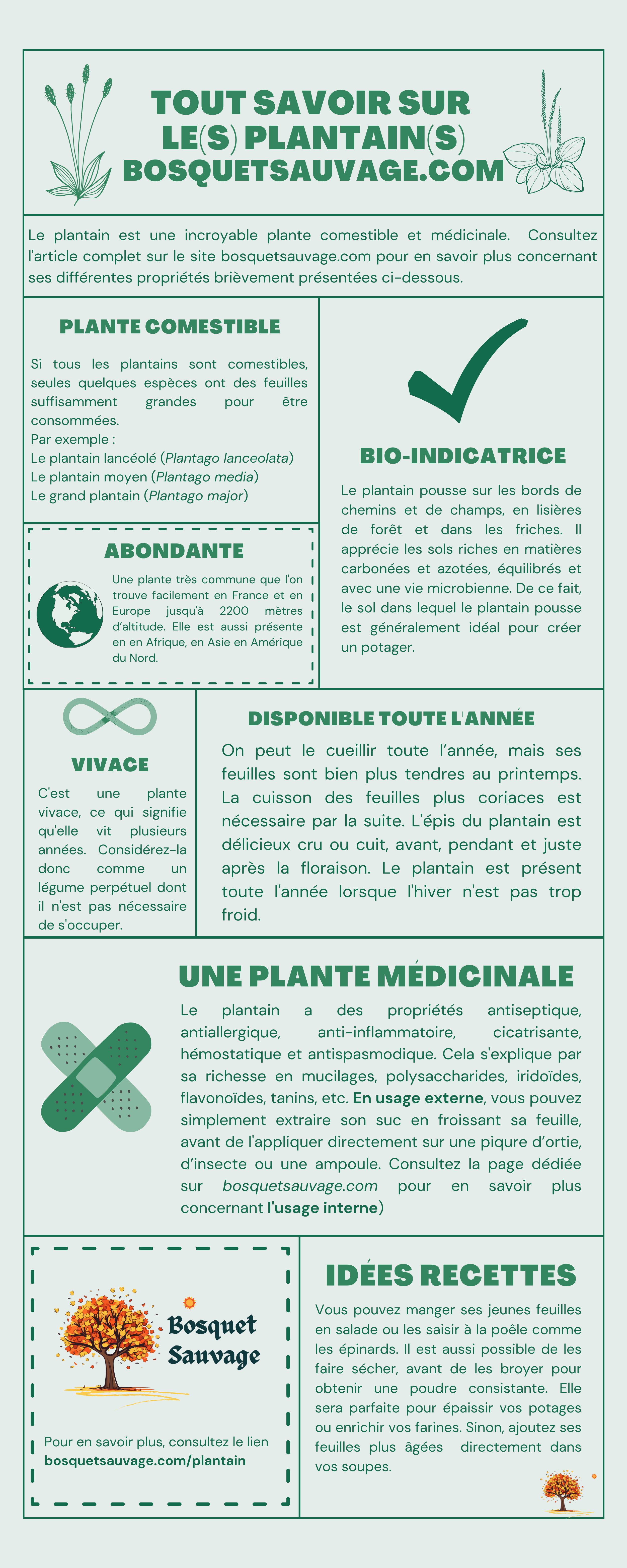 Le plantain est une plante vivace. C’est-à-dire une plante qui vit plusieurs années. Vous la retrouverez donc au même endroit d’année en année.